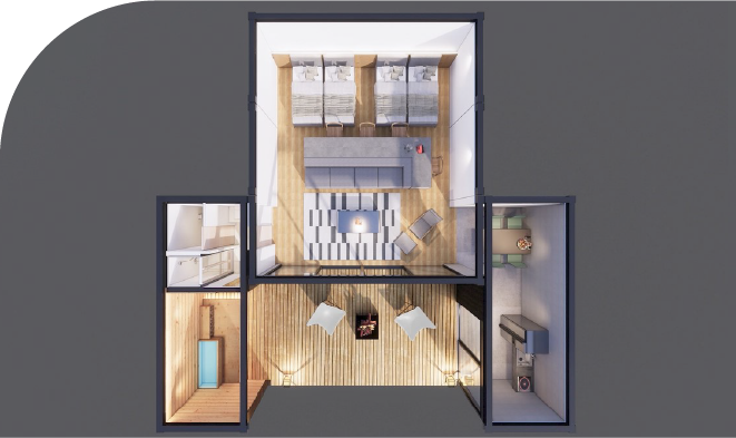 MEGABOXはラーメン構造で作るユニットハウスです。 すべて国産の材料を採用。JIS鋼材を使用しており建築確認申請も可能です。那須にある自社工場で製造し現地では基礎に設置するだけ。ポータブルであるというユニットハウスのメリットを生かしながらも、建物としての品質も追求した次世代型建築を実現しました。 職人による完全国内施工なので、高耐久かつ快適性も兼ね備えています。MEGABOXはサイズや間取りを自由にカスタマイズできるため戸建てやグランピング、店舗などあらゆるシーンで利用可能です。