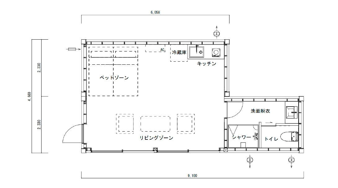 ワイドタイプ H2,650×W9,100×D2,330